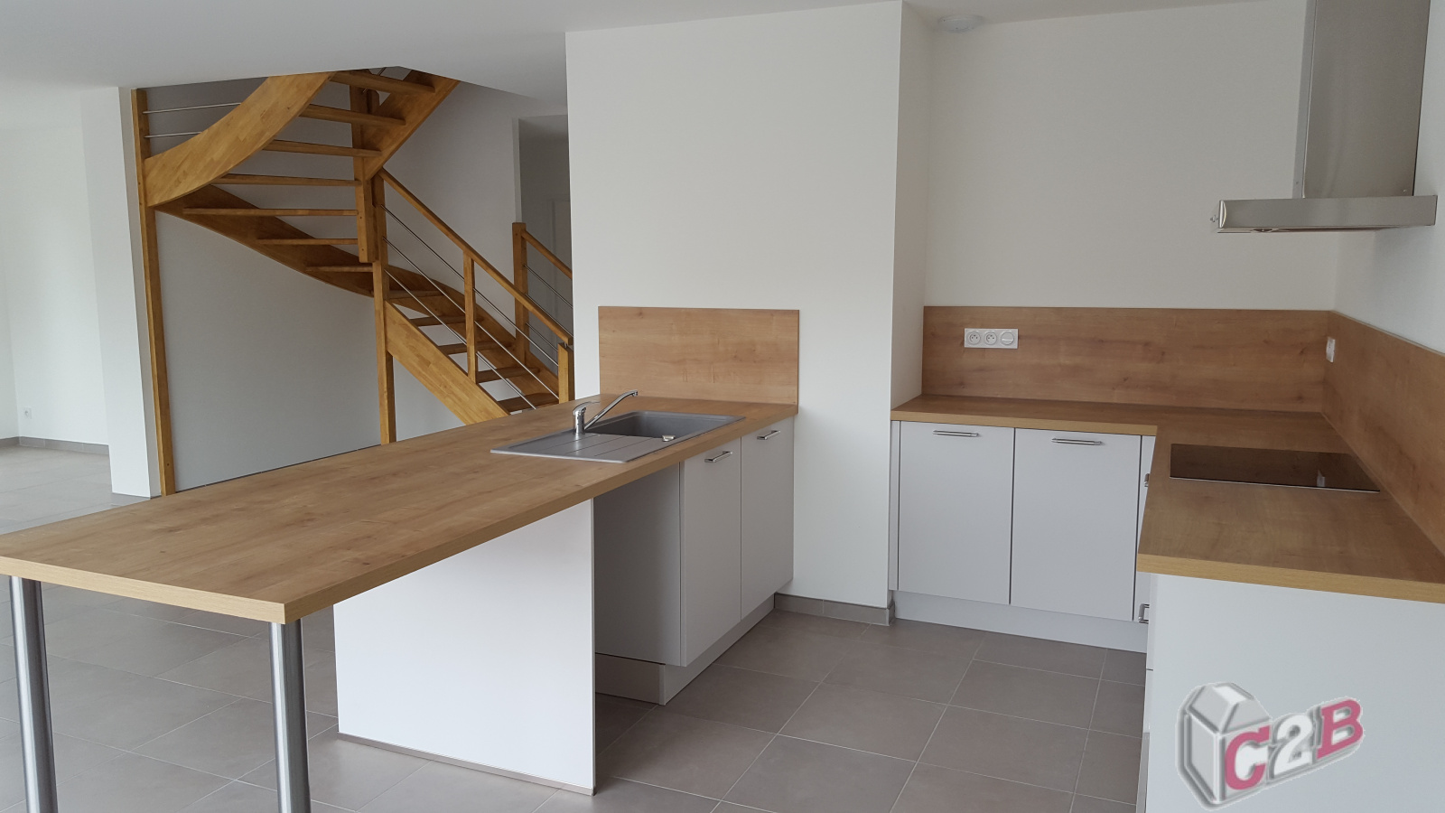 Cette superbe maison de 138 m² comprend un salon avec une cuisine ouverte semi-équipée, un cellier,